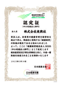 株式会社東興社は、このたび「健康経営優良法人2025年」の認証を取得いたしました。
